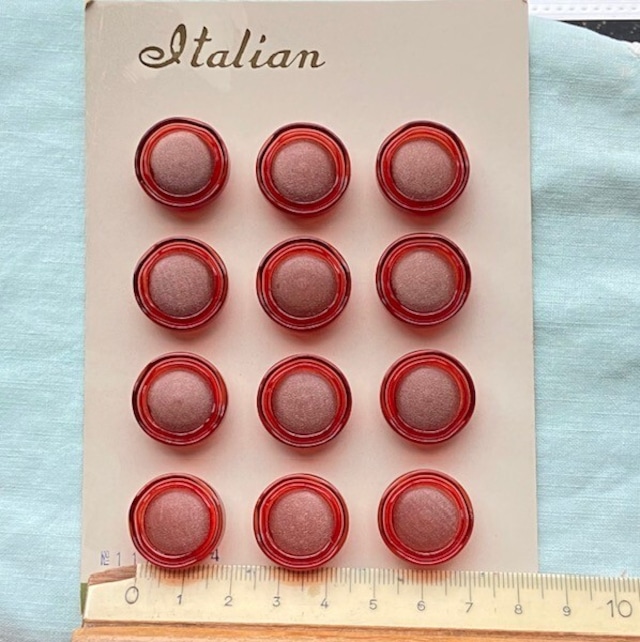 フランスの蚤の市で見つけた年代物のボタンです。 スカーレット赤色の発色が綺麗です。 大きめ20mmもあります。 直径16mm 厚さ4mm おひとつのお値段となります。