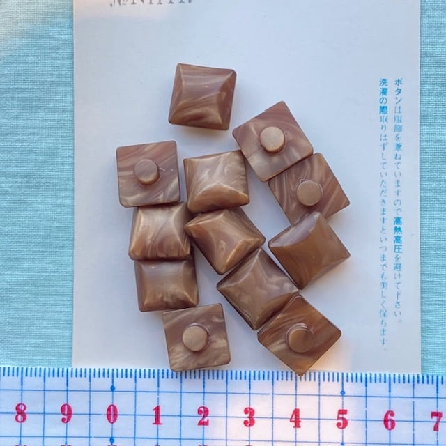 ボタンシート 1枚売り モカ四角×脚付 12個 18mm ビンテージ 昭和 レトロ ハンドメイド素材 ブラウン系