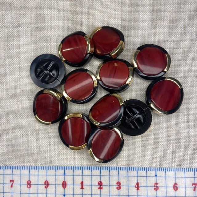 1シート 金⁺黒縁×渋赤 12個 21mm ビンテージ 昭和 レトロ ハンドメイド素材 レッド系