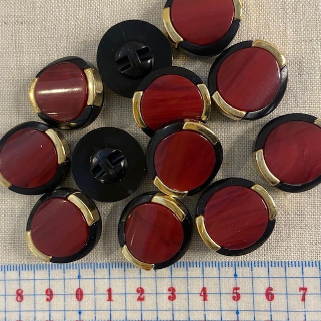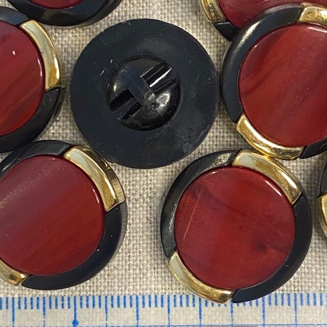 1シート売り 金⁺黒縁×渋赤 12個 25mm ビンテージ 昭和 レトロ ハンドメイド素材 レッド系