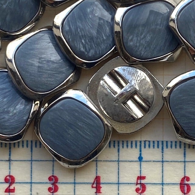 1シート 銀縁×グレー 12個 16mm ビンテージ 昭和 レトロ ハンドメイド素材 グレー系