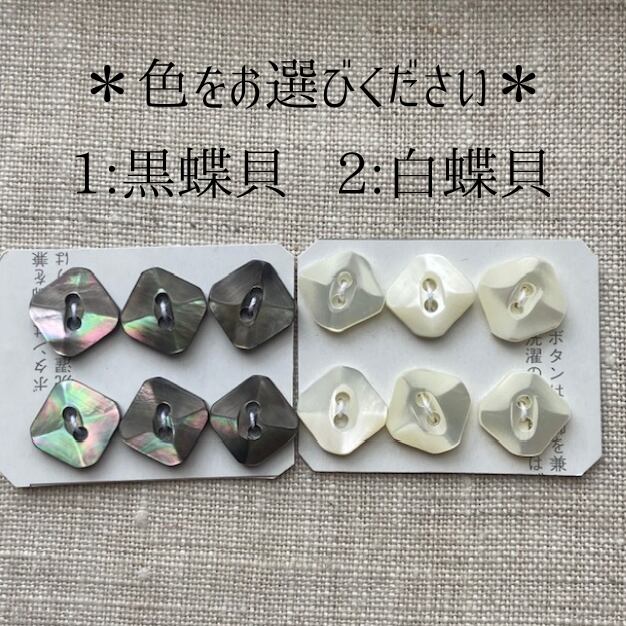 貝ボタン (菱) 2色 6個 11mm ハンドメイド素材 天然素材 白蝶貝 黒蝶貝