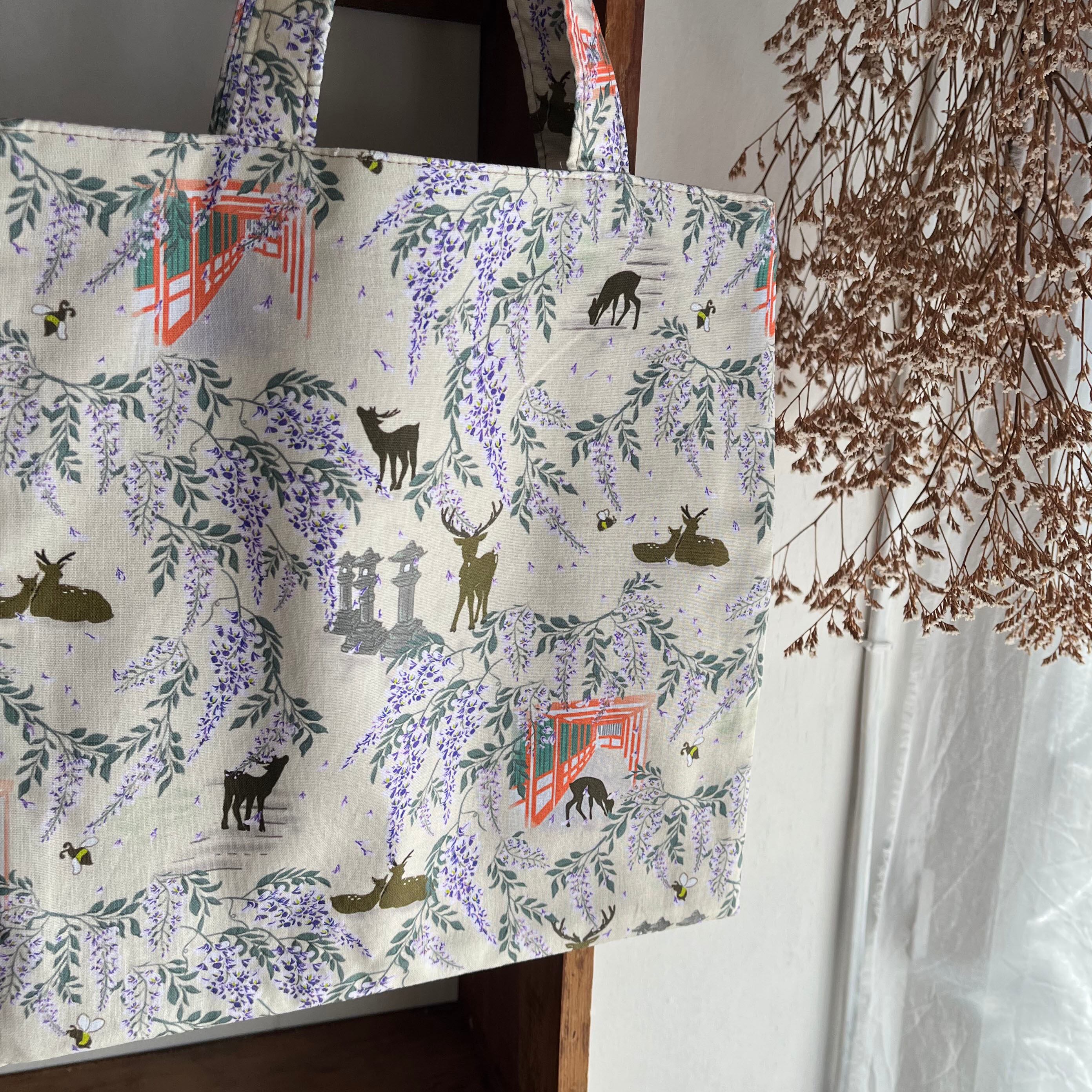 『麗らかな杜』ミニエコバッグfoo stitch×-cooh 鹿 春日大社 藤