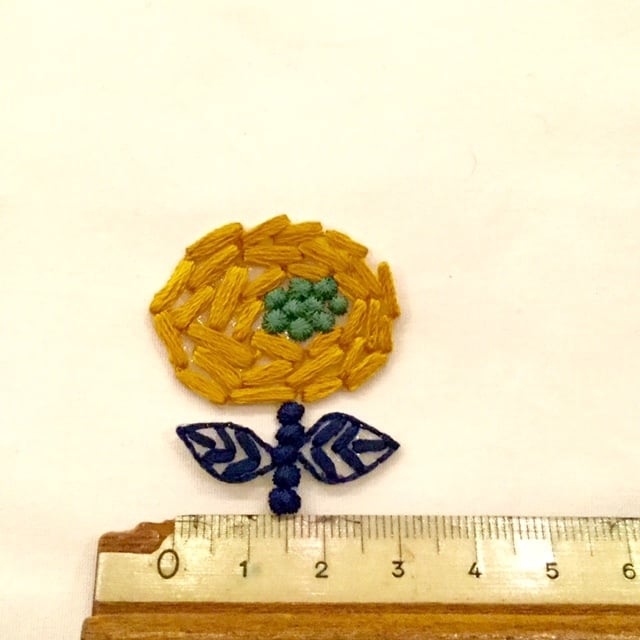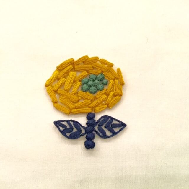 手刺繍風 お花ワッペン(カラシ色)[WA067]