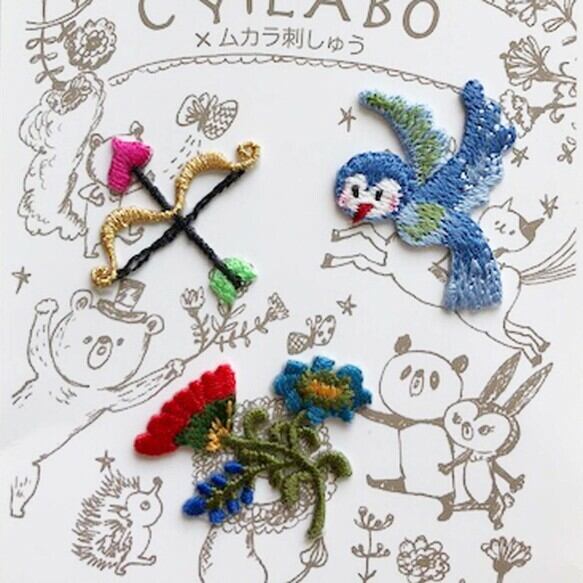 CYILABOオリジナルワッペン 青い鳥×弓矢×ブーケ[WA005]