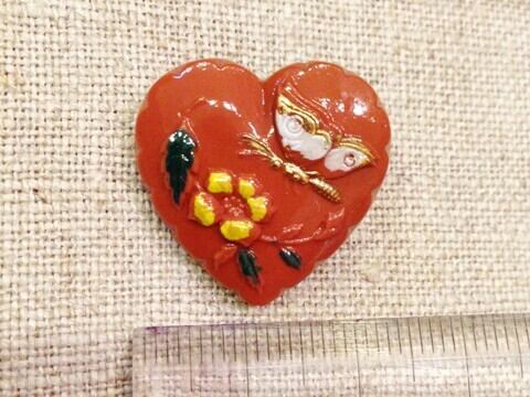 新品 チェコガラスボタン(ハート蝶柄)[BO035]