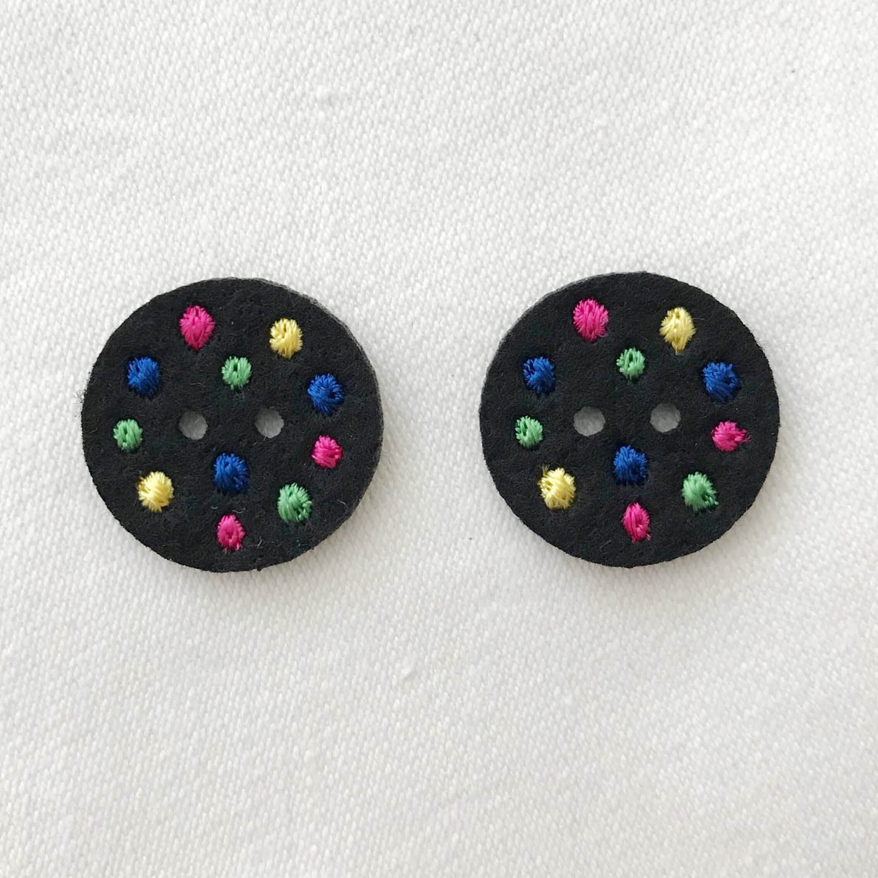 黒地にマルチカラーのドットが大人可愛いワッペンです。
