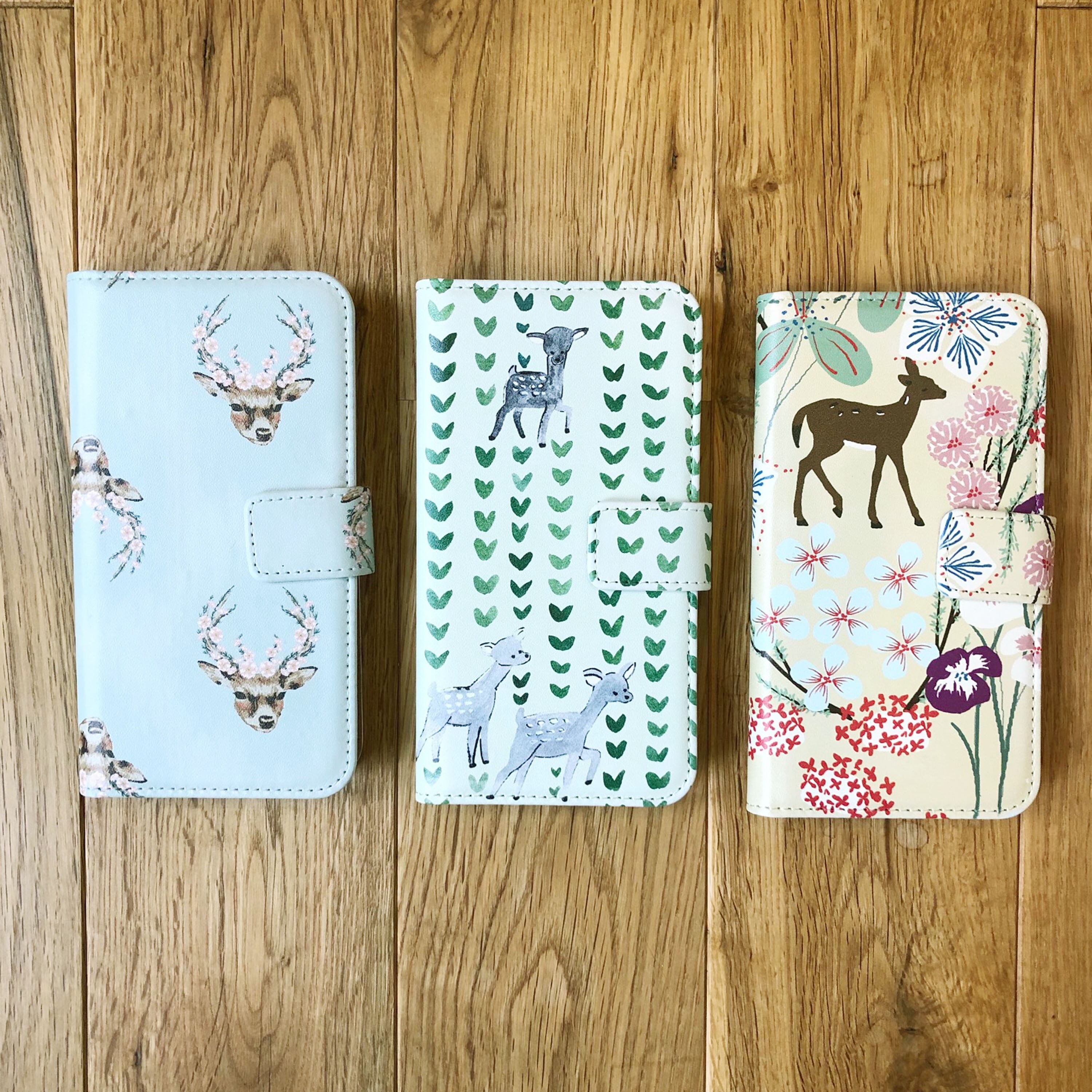 コラボレーションしたオリジナル柄「神鹿 ~shinroku~」を使用した手帳型スマホケース。