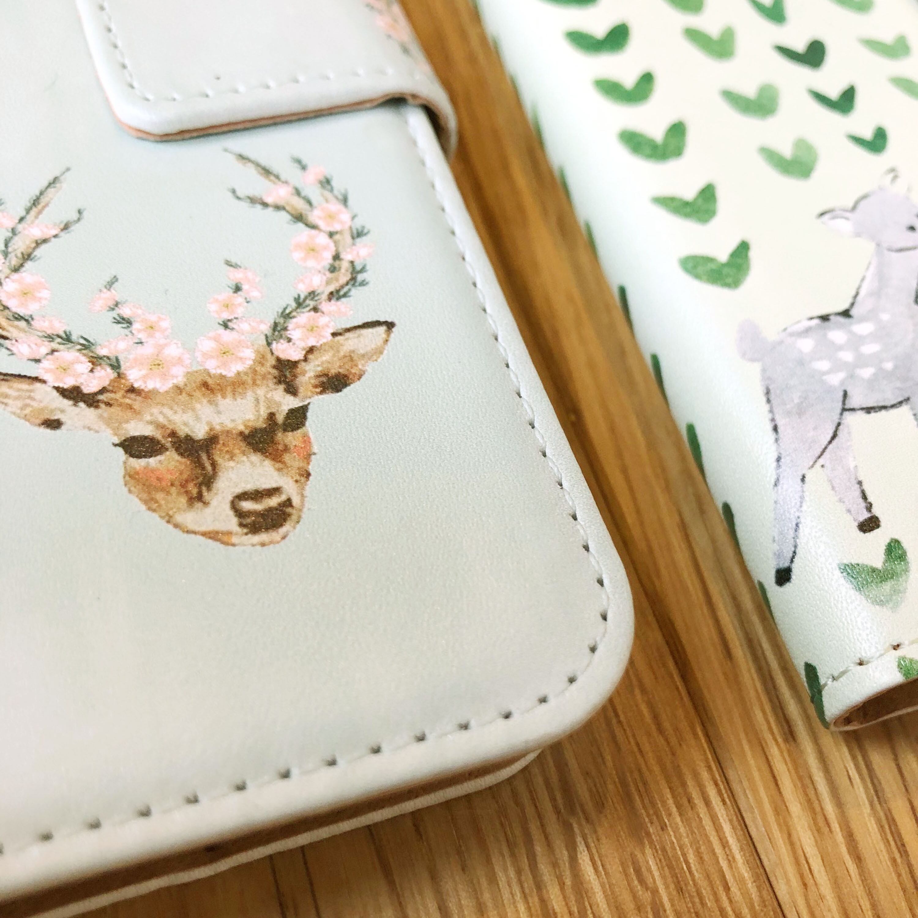 スマホ手帳型ケース 鹿柄オリジナル 「神鹿 shinroku」ペールグリーン
