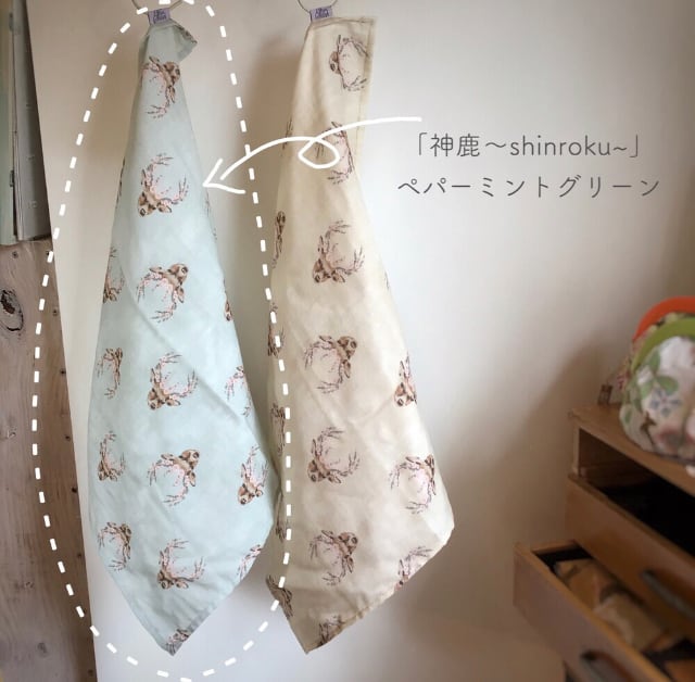 大判ダブルガーゼハンカチ 『神鹿〜shinroku〜』2col foo stitch×ーCOOH 鹿柄