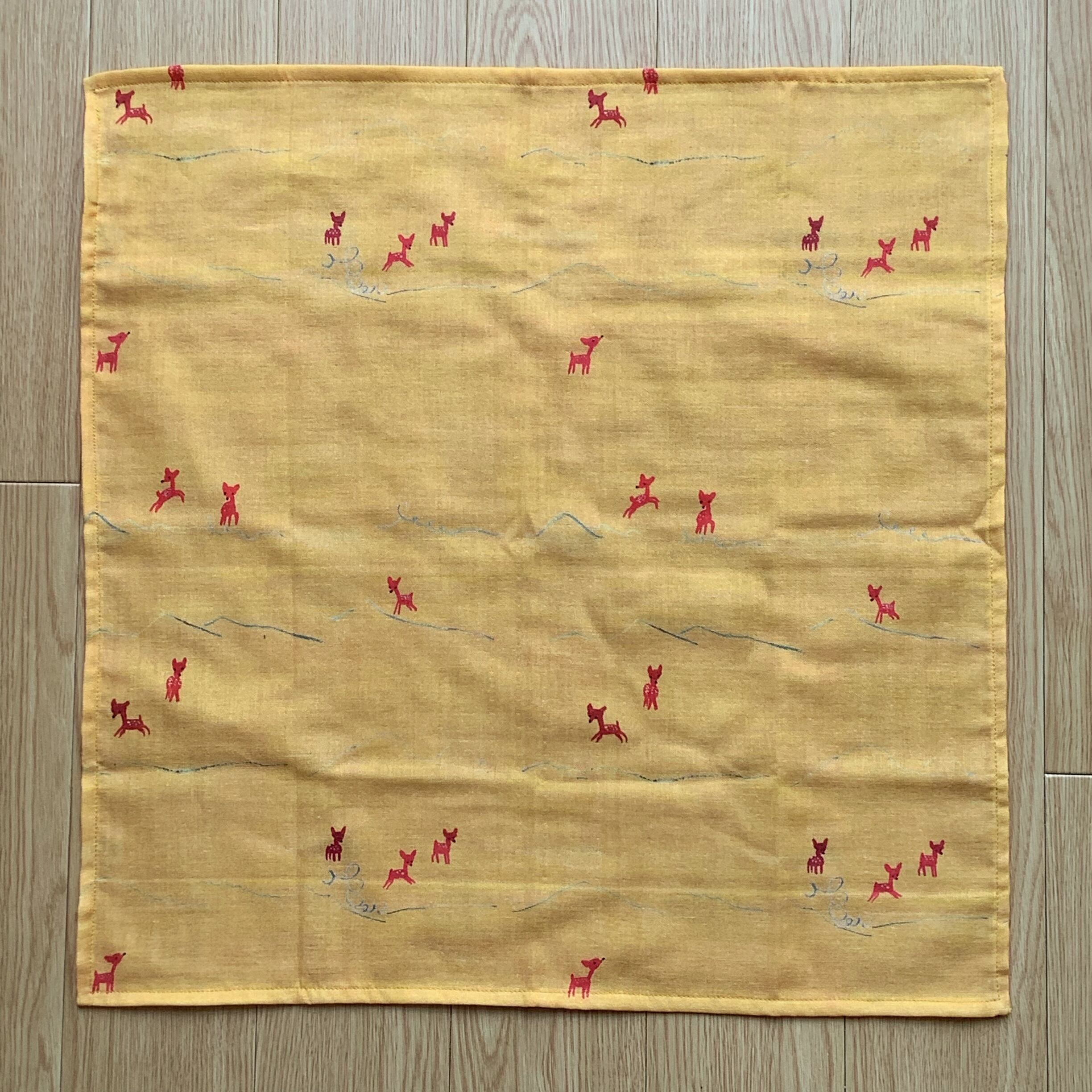 雑貨デザイナー「CYILABO」さんとのコラボレーションから生まれた、「奈良ならでは」「foostitchにしかない」オリジナル布を、正方形の大判ハンカチに仕立てました。肌触りの良いダブルガーゼ生地は、バンダナやスカーフのように首に巻いても◎。季節を問わず大活躍です。