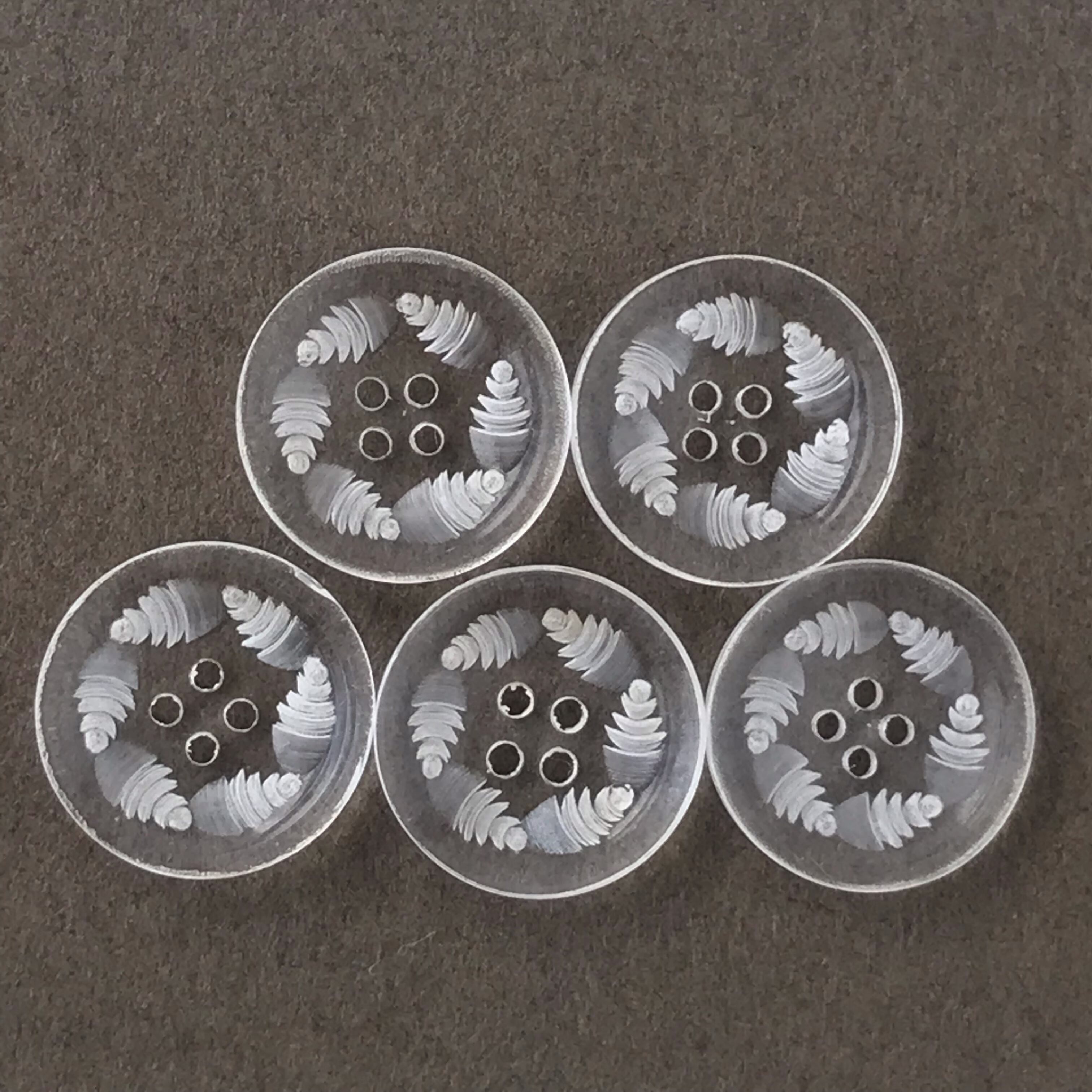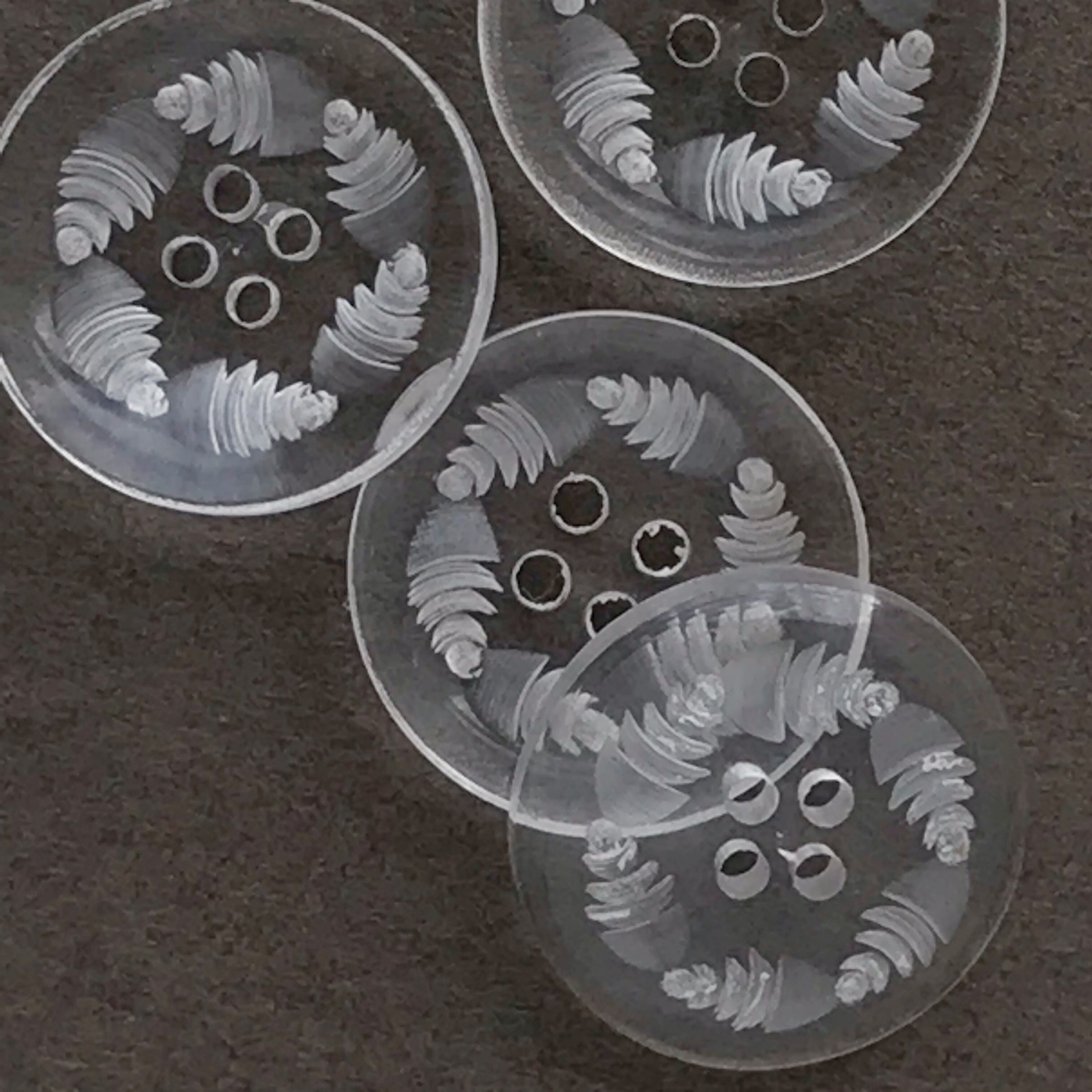 ヨーロッパ製 デザインボタン クリア透かし葉 四つ穴 (年代物)