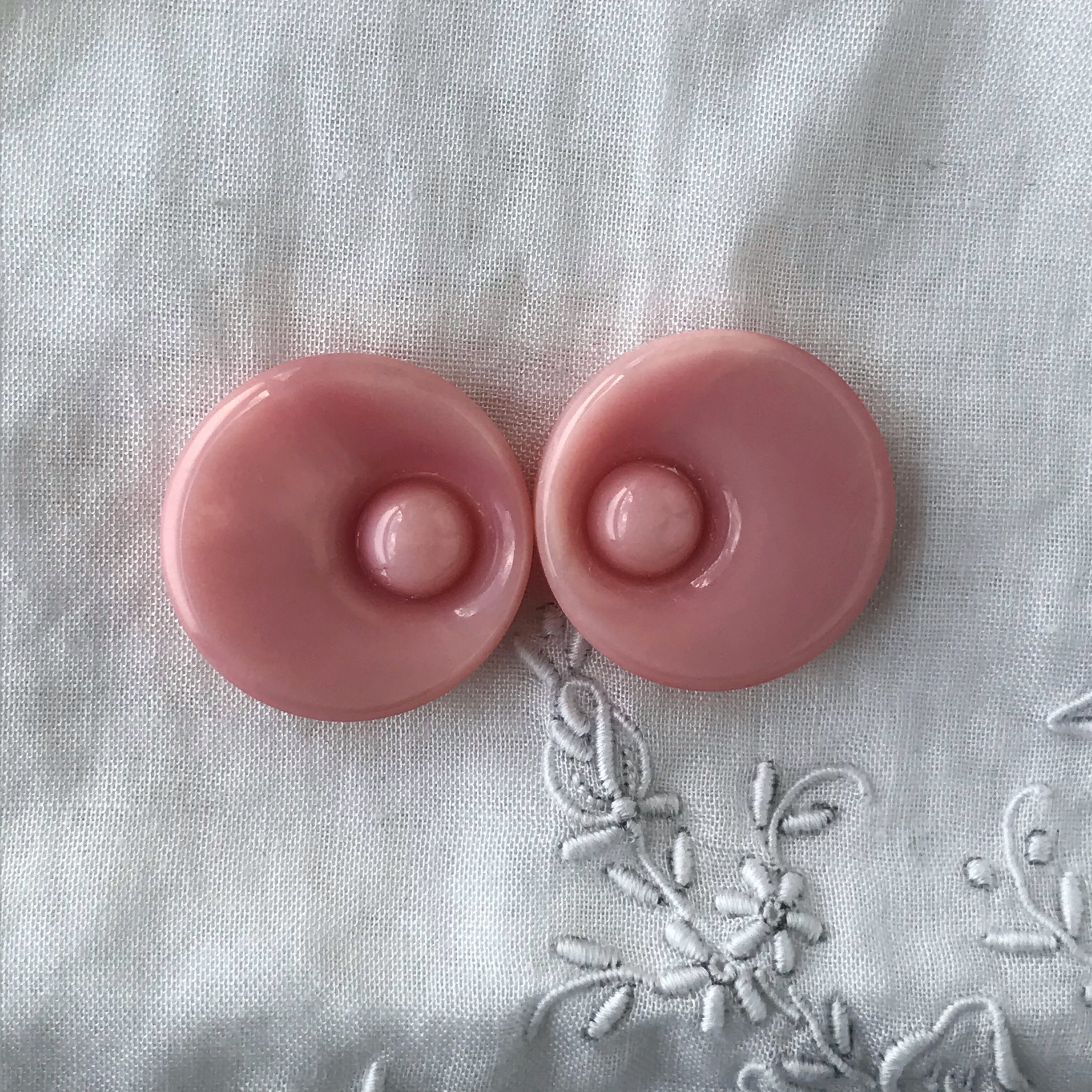 ヨーロッパ製 デザインボタン ピンク目玉 裏穴 (年代物)