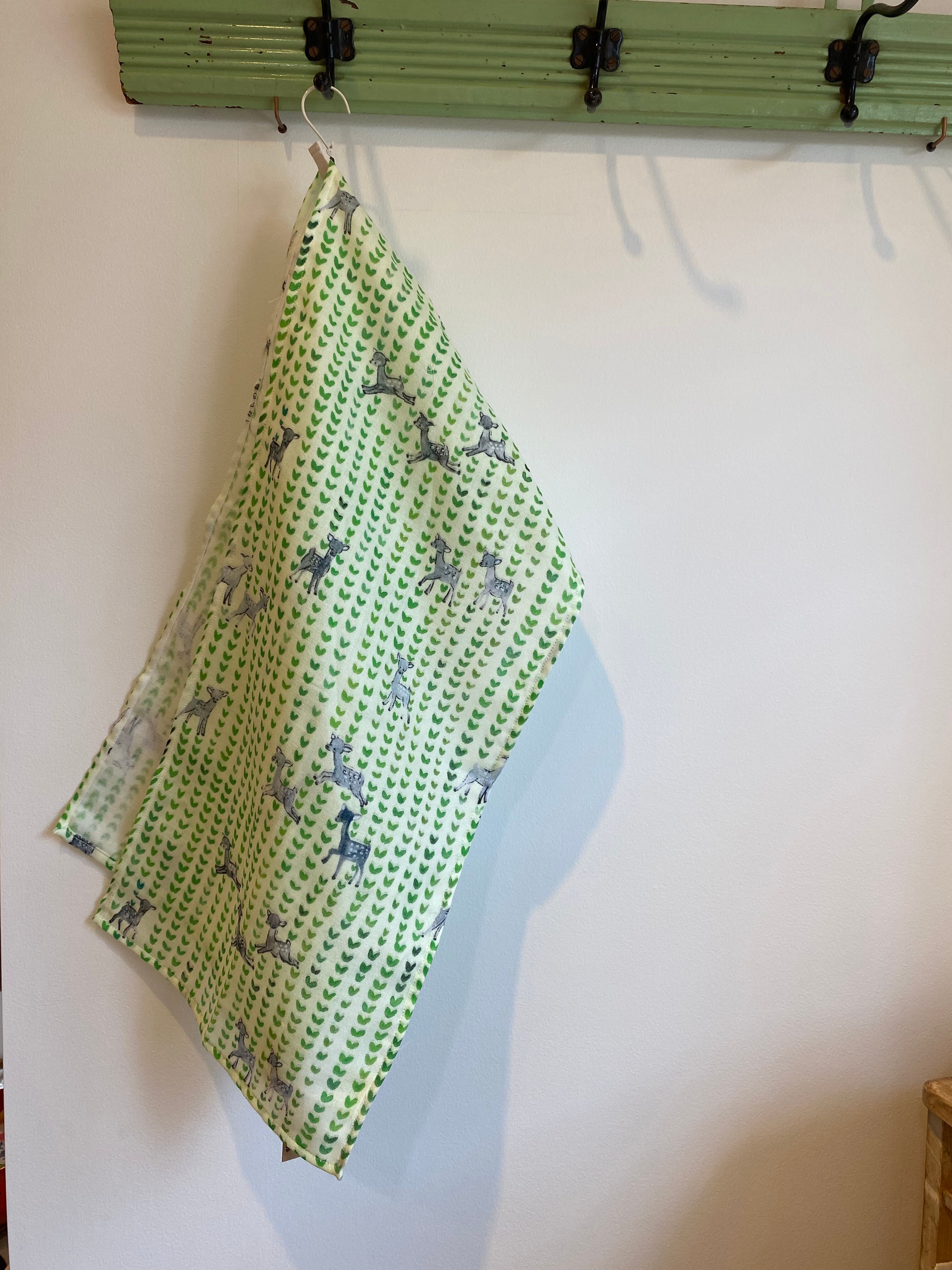 ダブルガーゼ手ぬぐい『Leaf and Deer』ライトグリーン foo stitch×CYILABO