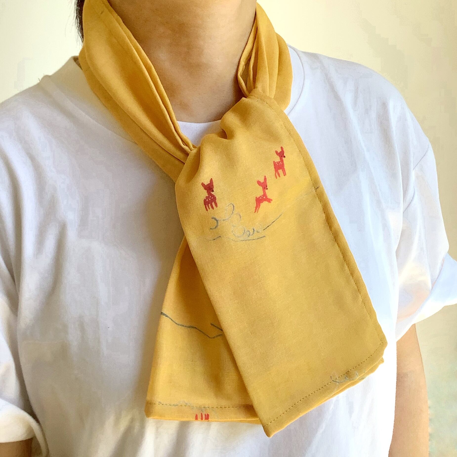 雑貨デザイナー「CYILABO」さんとのコラボレーションから生まれた、「奈良ならでは」「foo stitchにしかない」オリジナル布を、手ぬぐいサイズに仕立てました。肌触りの良いダブルガーゼ生地は、スカーフのように首に巻いても◎。季節を問わず大活躍です。