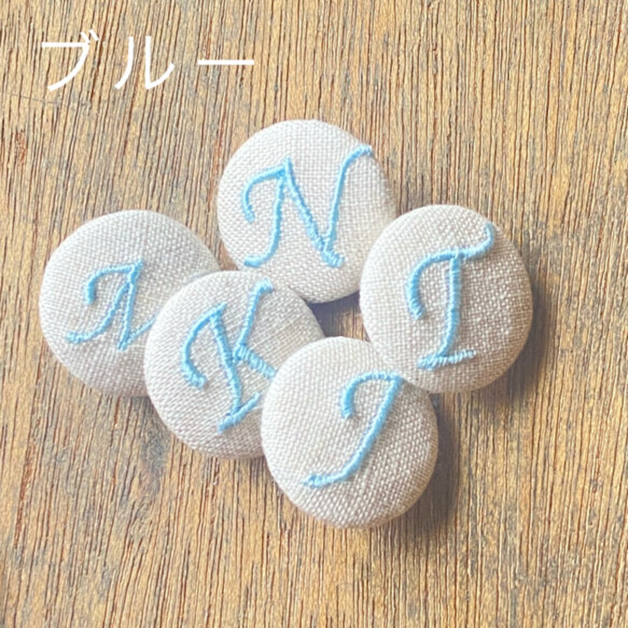 アルファベット刺繍くるみボタン 25mm 4col